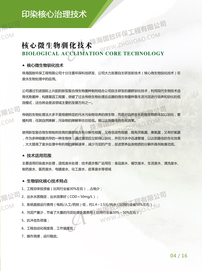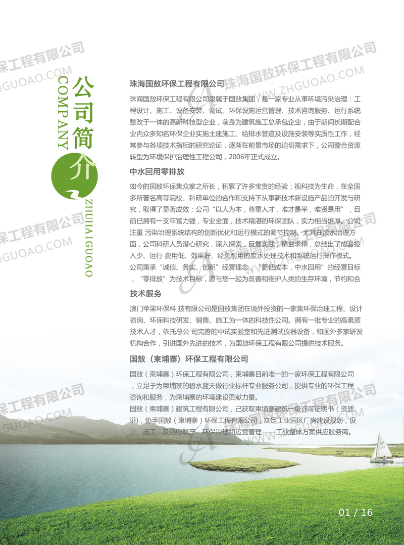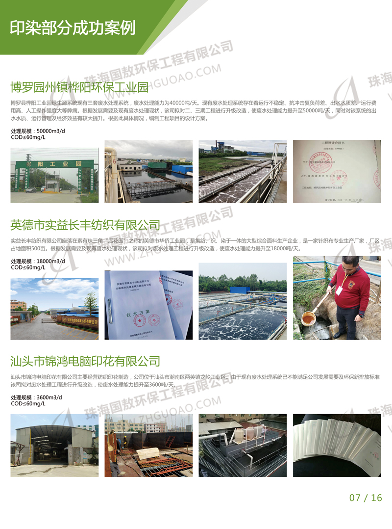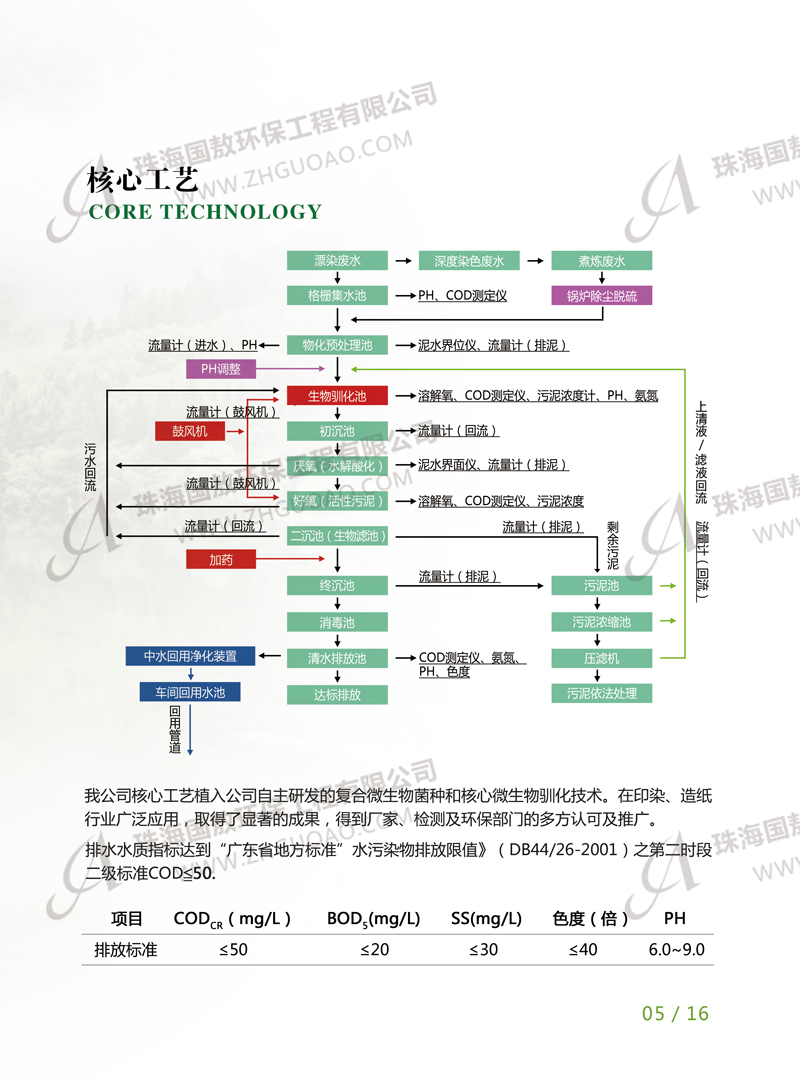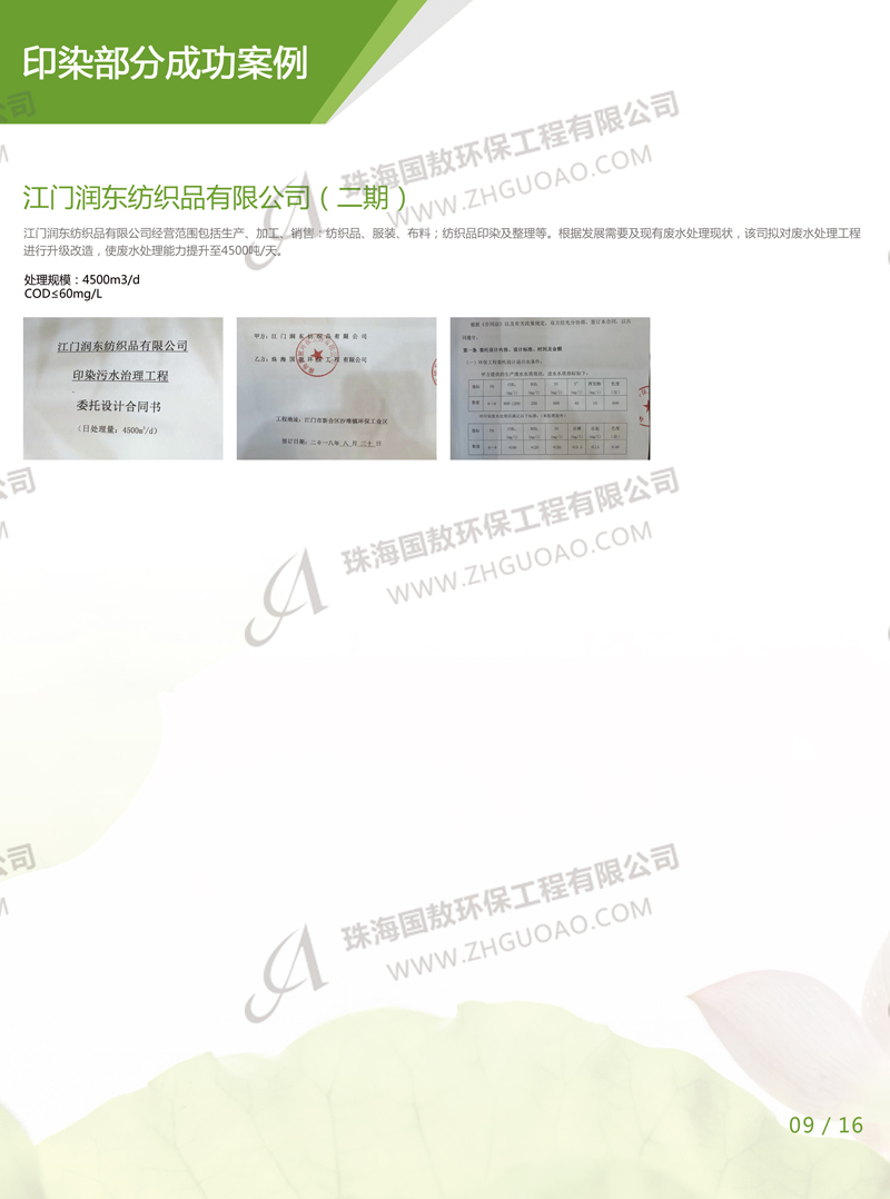國敖環(huán)保工程有限公司是一家專業(yè)從事印染廢水處理、工業(yè)廢水處理、印染中水回用的高新科技型企業(yè)。
