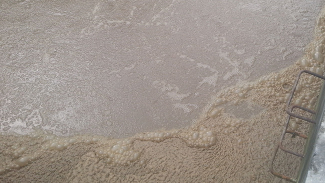 4、解決辦法:減小曝氣量,通過噴灑水或水珠以打碎浮在水面的氣泡來減少泡沫,嚴重時適當投加消泡劑。