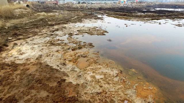 此外,在這處滲坑周邊,還有七八處水面呈現(xiàn)黑色、土黃色等異色的滲坑。其中黑色滲坑邊上堆著黑色、紅色污泥。“我們也很想知道這些廢水從哪里來,在這里放了多久,但是在現(xiàn)場沒有打聽到。”向春說,現(xiàn)場沒有發(fā)現(xiàn)排污管,應該是用罐車運輸?shù)竭@里傾倒的。