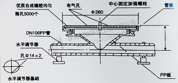干管為10-15米/秒;支管為5米秒。曝氣器表面距池底安裝高度:270mm. 250mm,推板式為200mm